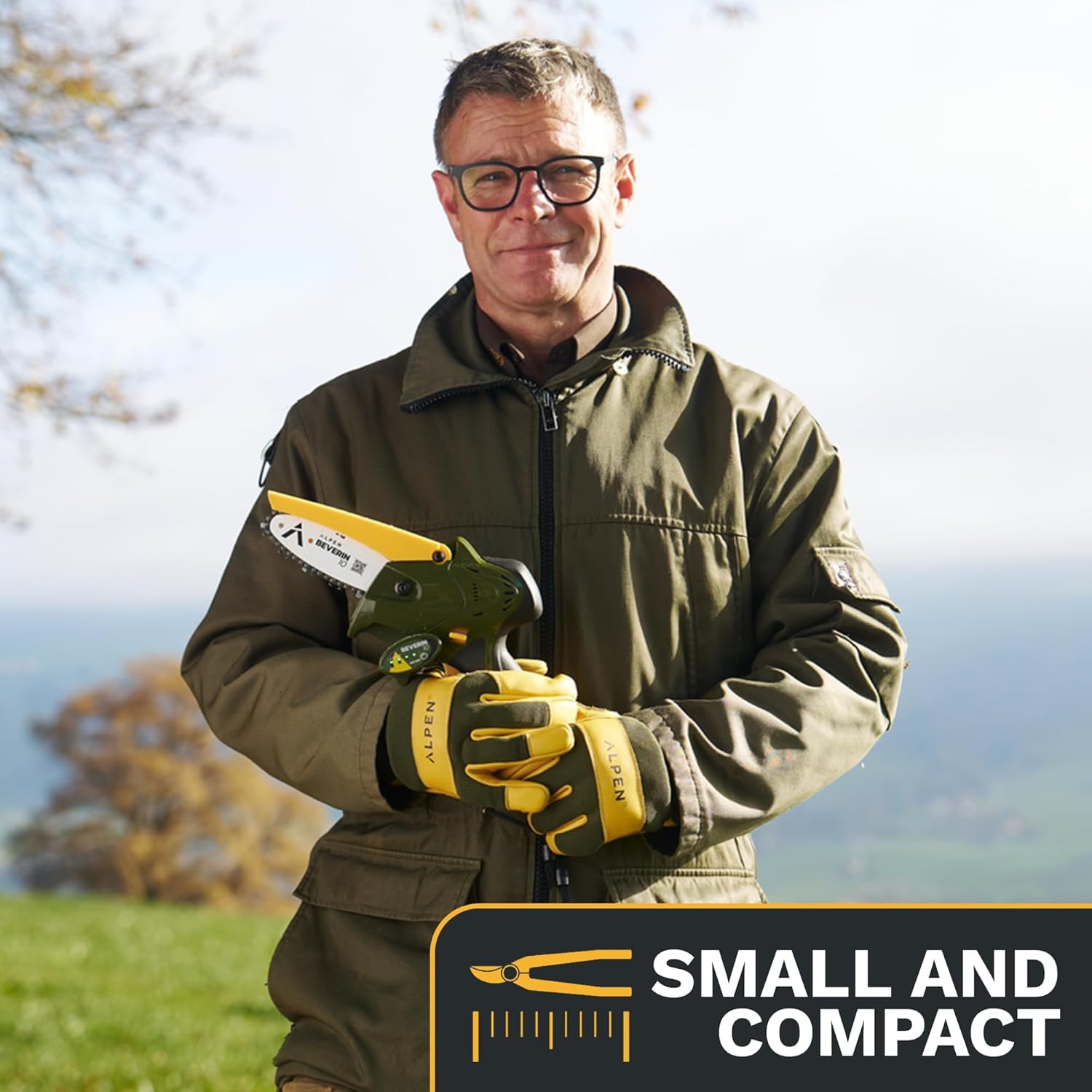Alpen Swiss Tools Beverin 10 Elektro-Kettensäge - 10 cm Schnitt, 2× 14,4 V Li-Ion Akkus + 3-in-1 Ladegerät, automatische Schmierung, Ersatzkette, Profi-Komplettset