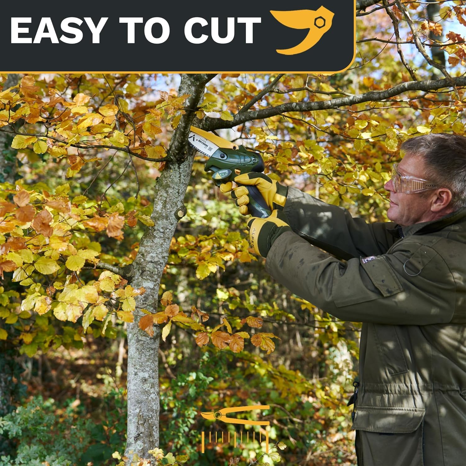- LEISTUNGSSTARKER MOTOR & SCHARFE KETTE - Der Beverin 10 ist mit einem Hochleistungsmotor und einer Präzisionskette ausgestattet, die ein schnelles und müheloses Schneiden von Ästen bis zu 10 cm Durchmesser ermöglicht, selbst in Hartholz oder Knotenholz.