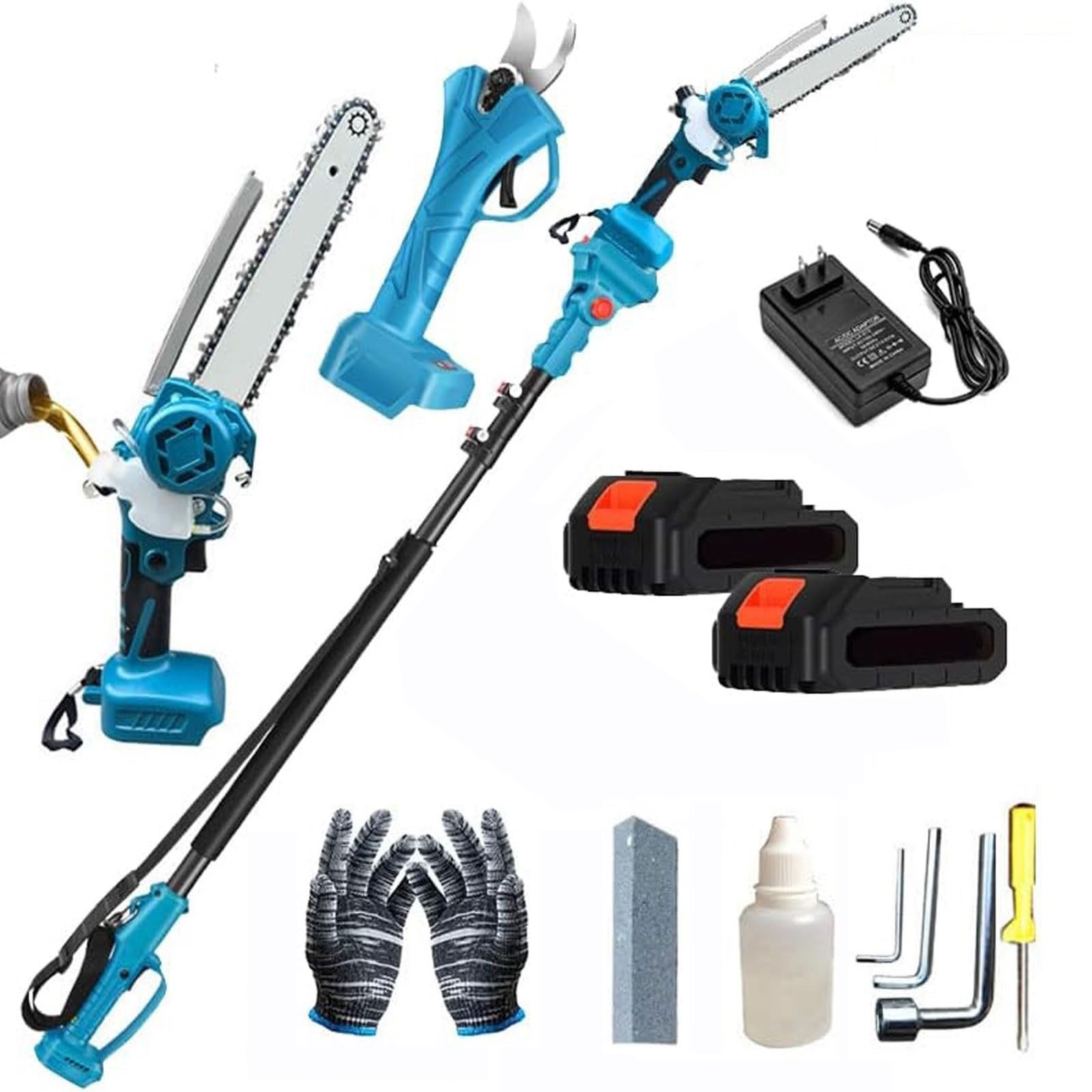 GHRERTX 4-in-1 Hochentaster & Astscheren-Set, 8" Mini-Kettensäge mit Öler, Akku-Gartenschere, Verlängerungsstange & 2 Akkus (147 Zeichen)
